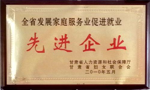 2010年5月公司被甘肅省人力資源和社會保障廳、甘肅省婦女聯合會評為“全省發(fā)展家庭服務業促進就業先進企業”;